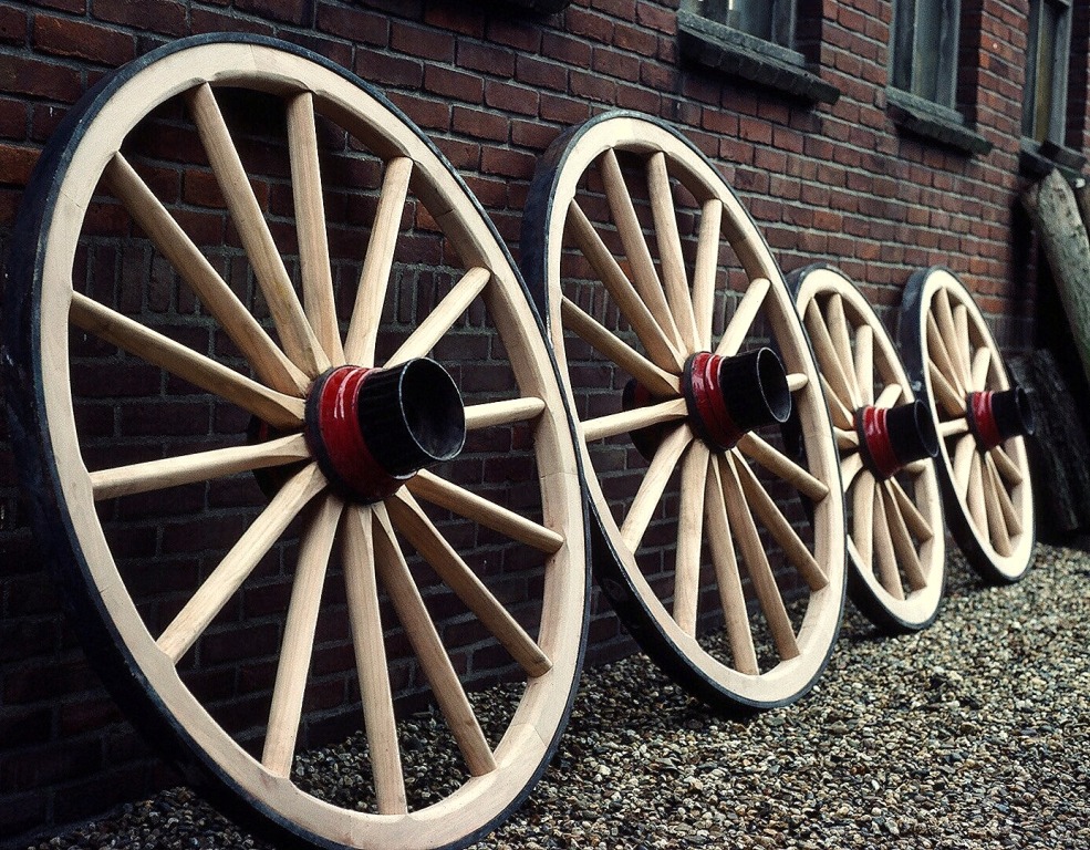 Nieuwbouw en restauratie van houten wielen, hoepels (ver)leggen, wielrubbers leggen.
